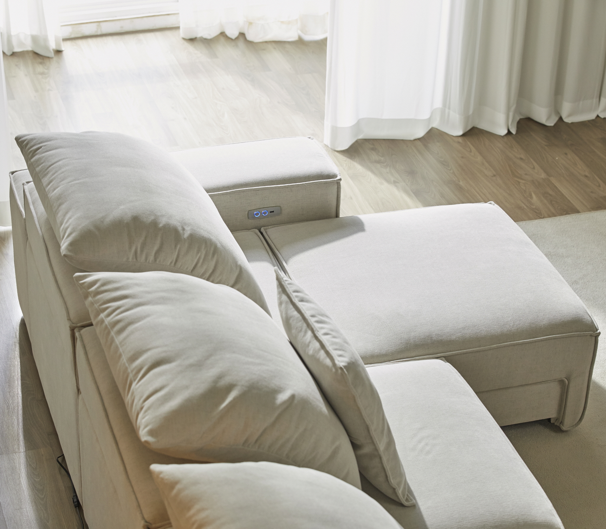 ▲ 중간과 끝에 좌석을 앞으로 빼서 더블 카우치 형태로 만든 모습이다. 자리마다 각각 버튼을 눌러서 작동시킬 수 있어서 그 점이 제일 마음에 들었다.