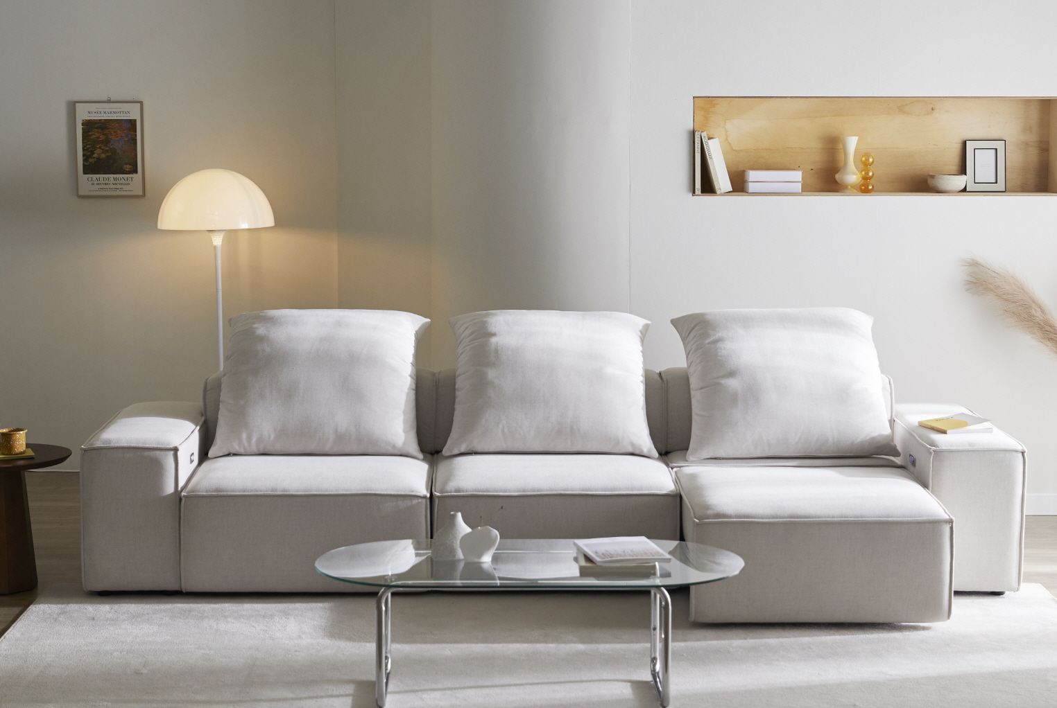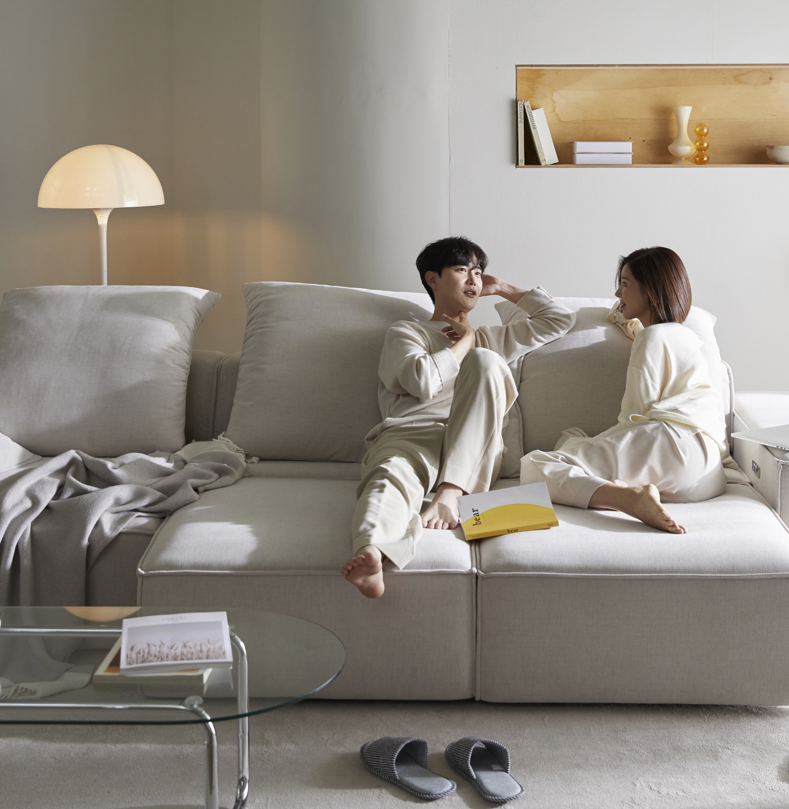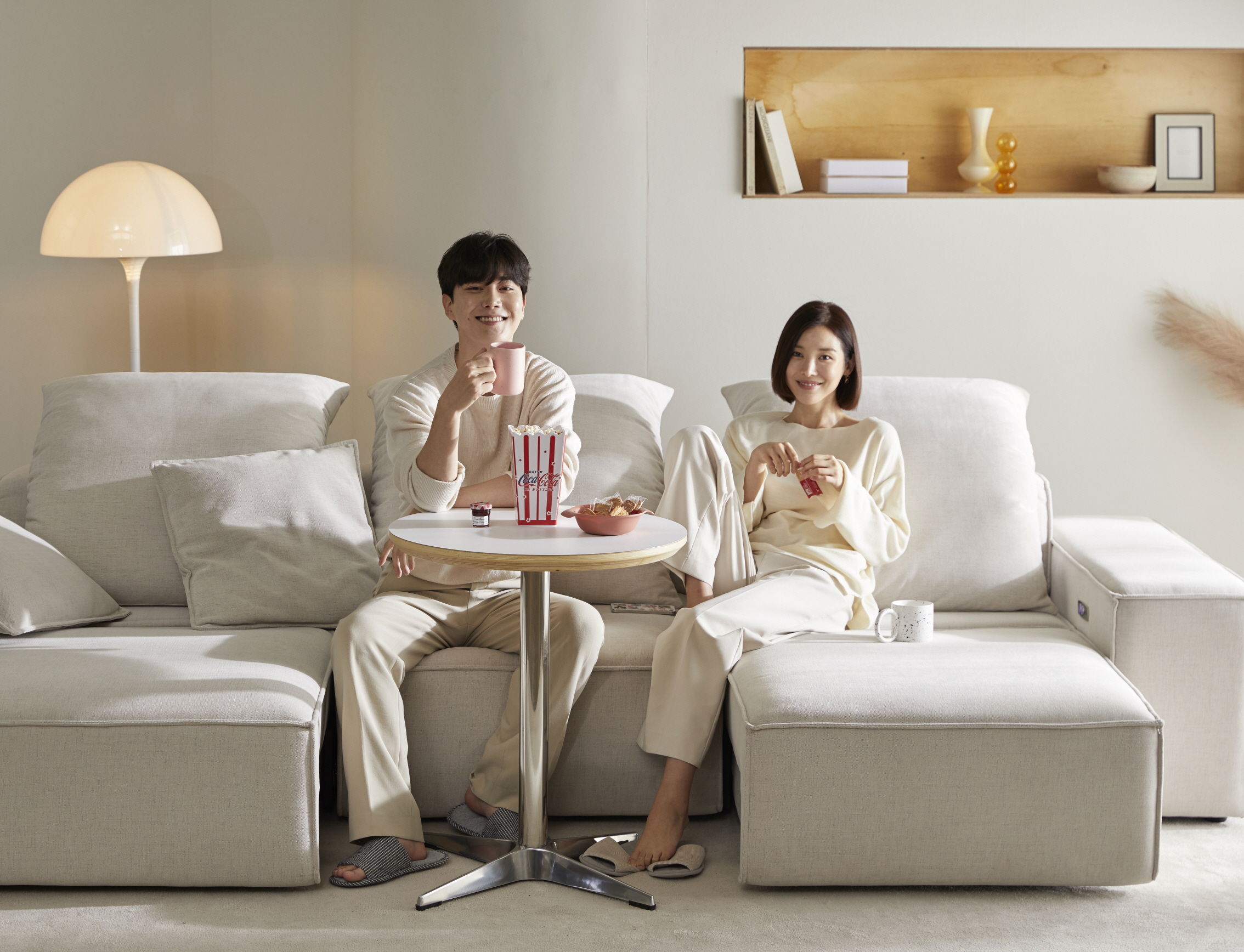 ▲ 모델 스튜디오 컷인거 같은데 가운데만 제외하고 양쪽을 빼서 카페 분위기도 낼 수 있더라. 이걸... 신혼일때 아니면 언제 해보나? 싶어서 신혼 생활 인테리어 패브릭쇼파라고 한번 제목을 잡아봤다. 측면 마감도 괜찮아보이고, 외장재도 기능성 패브릭이라서 관리에 스트레스를 받지는 않을듯 싶네.